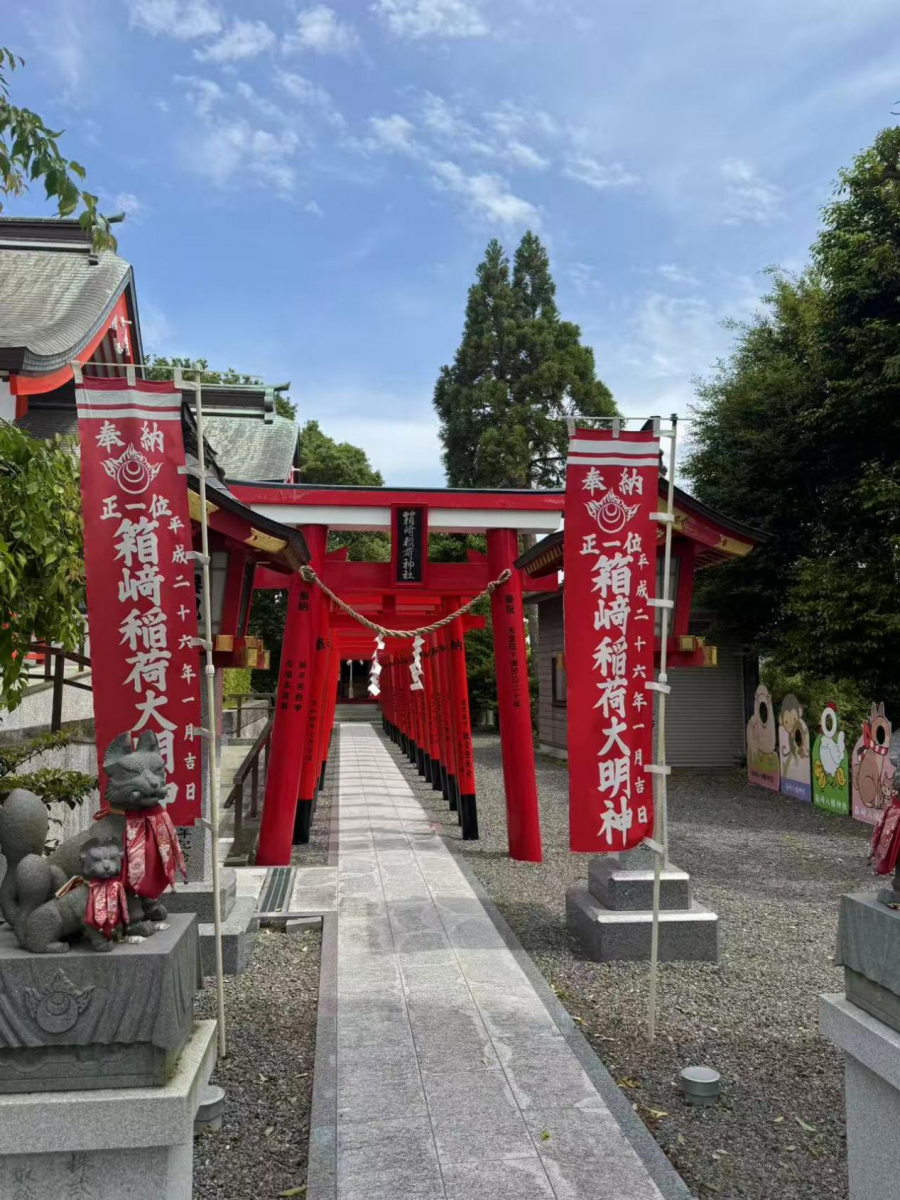 祭神也被称为稻荷大神,是保佑生意兴隆之神,也是五谷丰登、产业兴旺之神。本社为了出水当地农工商业的发展,前往京都的伏见稻荷大社,迎请伏见稻荷大神的分灵,以箱崎稻荷神社之名安奉神体。